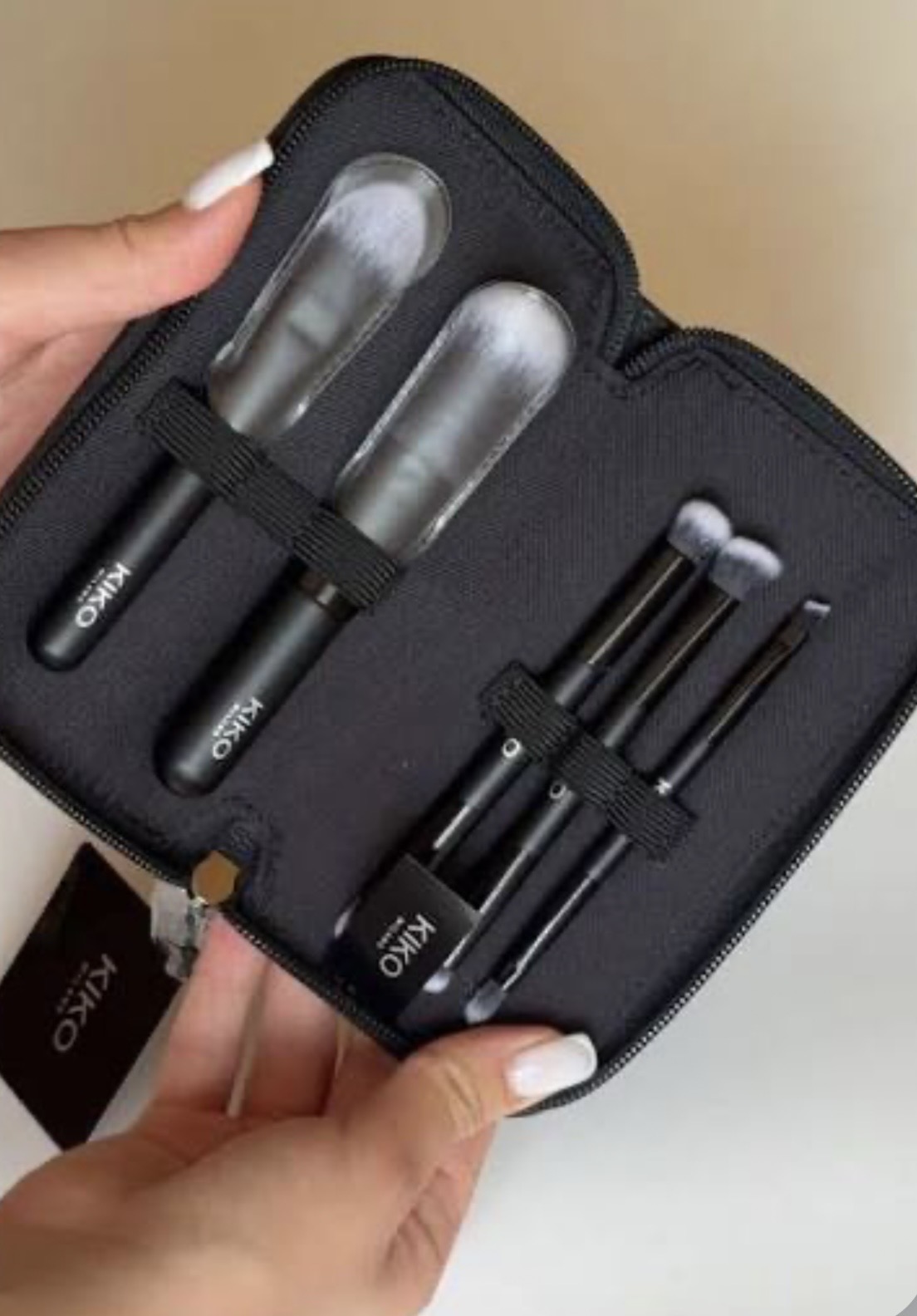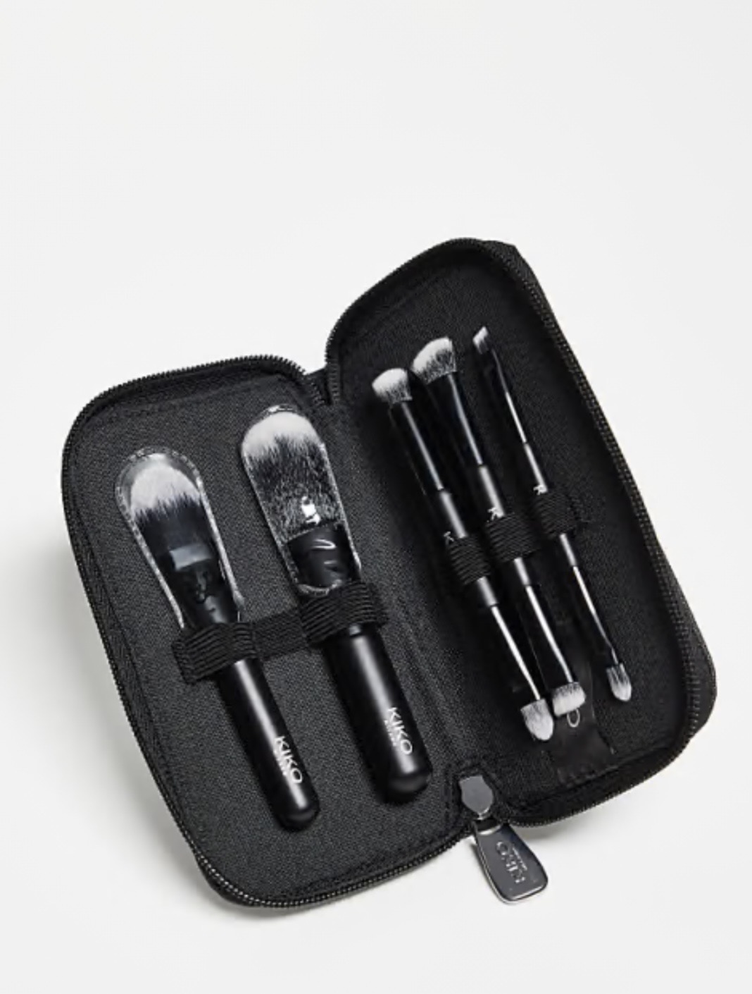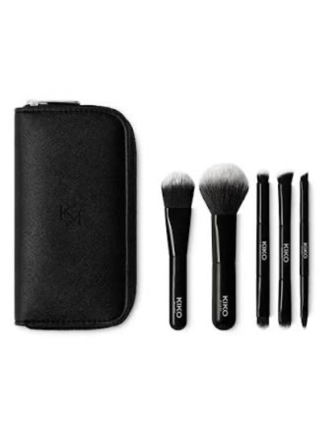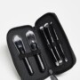 Une pochette pratique aux lignes élégantes contenant 5 accessoires professionnels : 2 pinceaux mono et 3 pinceaux duo : 8 applicateurs différents au total, pour le maquillage du visage, des yeux et des lèvres.